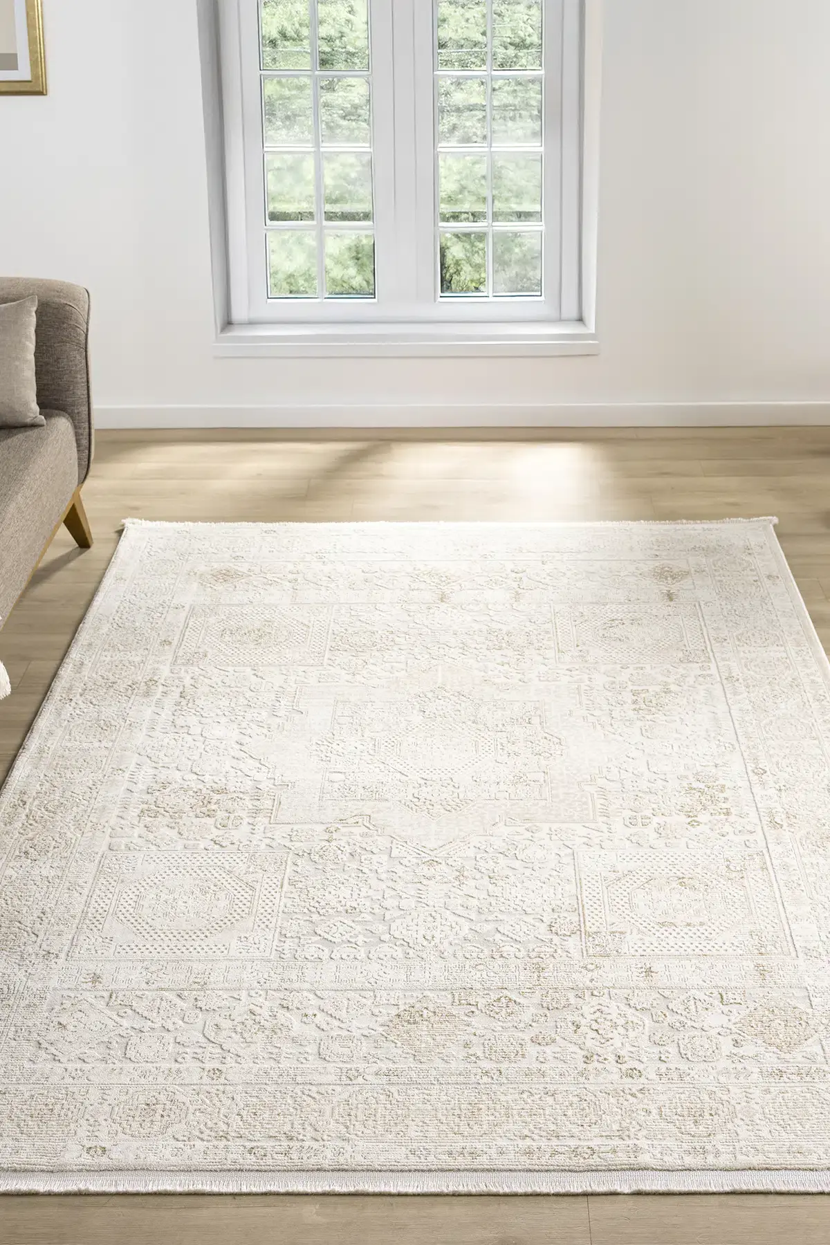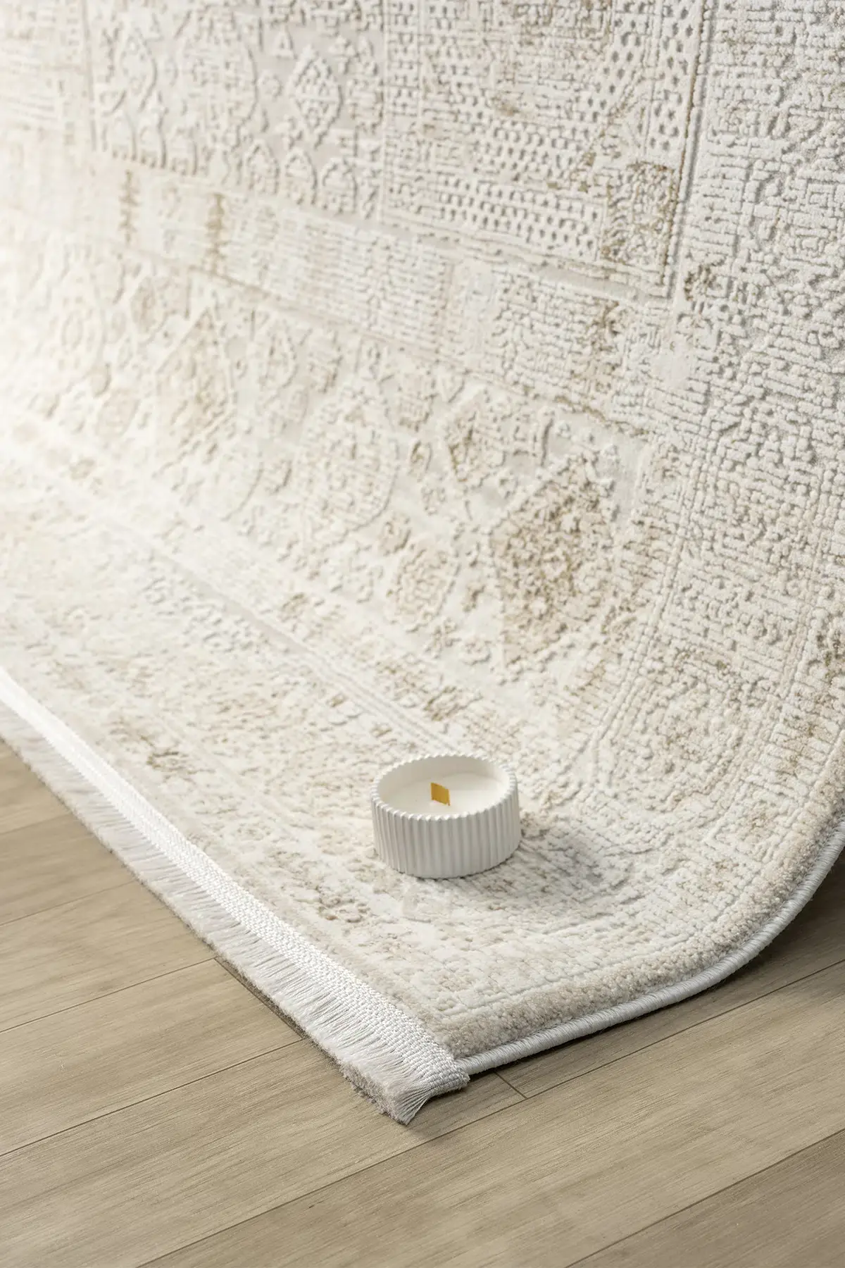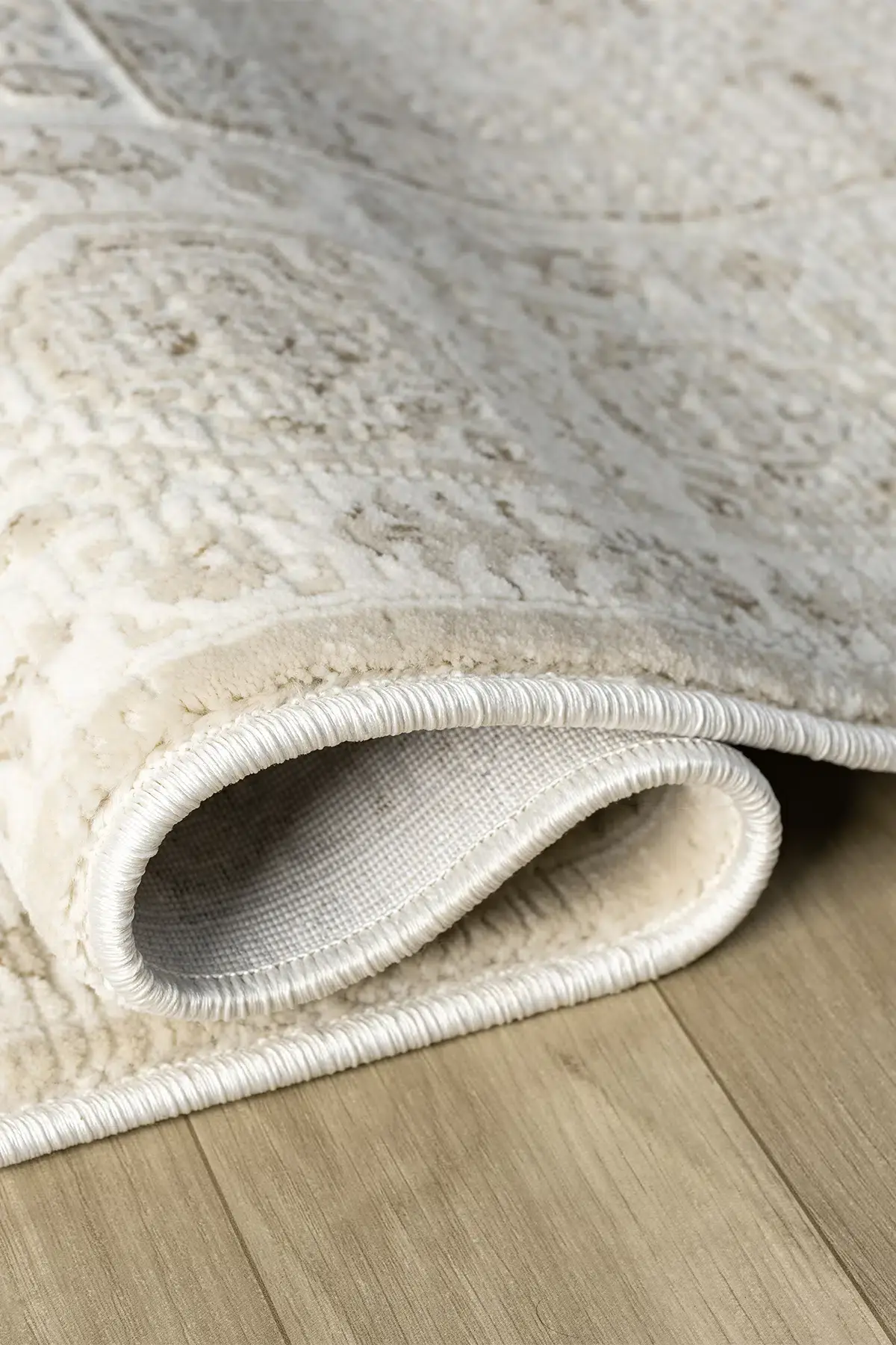 Pamuk, polipropilen ve polyester ipliklerin dengeli karışımı sayesinde hem yumuşak dokulu hem de dayanıklı bir halı deneyimi yaşatır.