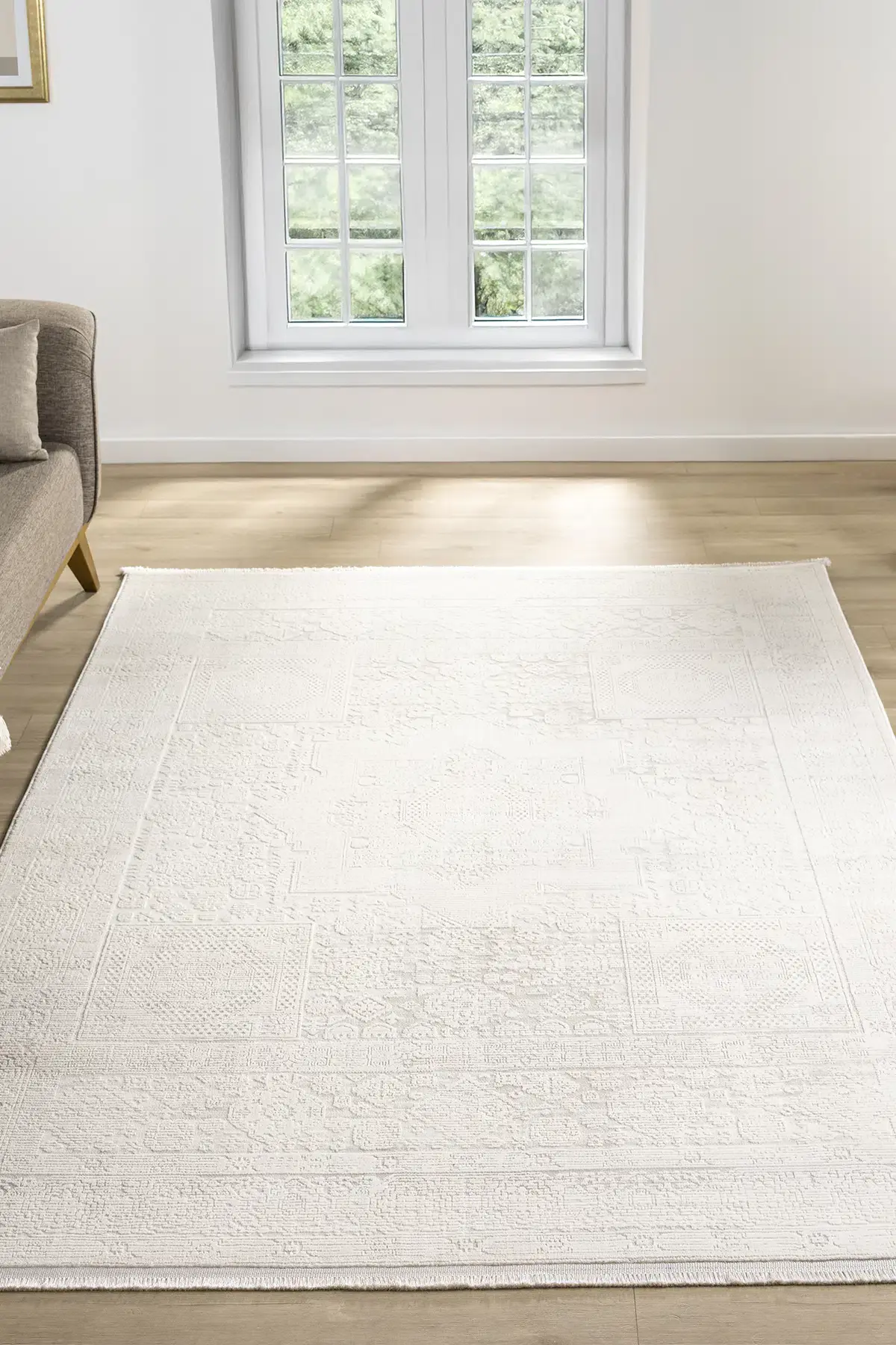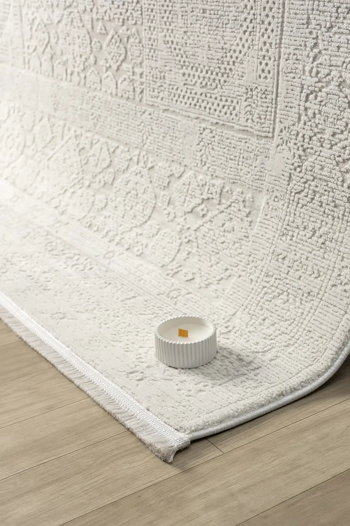 Pamuk, polipropilen ve polyester ipliklerin dengeli karışımı sayesinde hem yumuşak dokulu hem de dayanıklı bir halı deneyimi yaşatır.